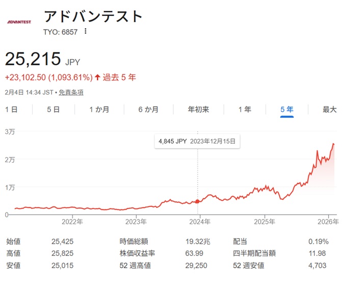 日本のAI関連企業といえば、アドバンテスト。半導体が正しく動くかを検査する装置を手がけるメーカーです。