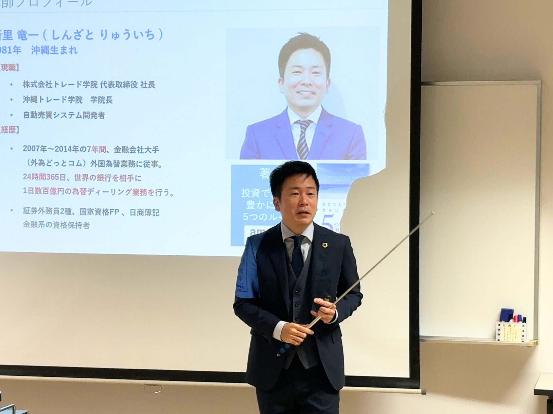 現在は沖縄トレード学院の学院長として、数百の自動売買システムで検証した再現性ある投資手法を「一生使える投資の技術」として延べ1,500名以上の受講生に伝え続けている